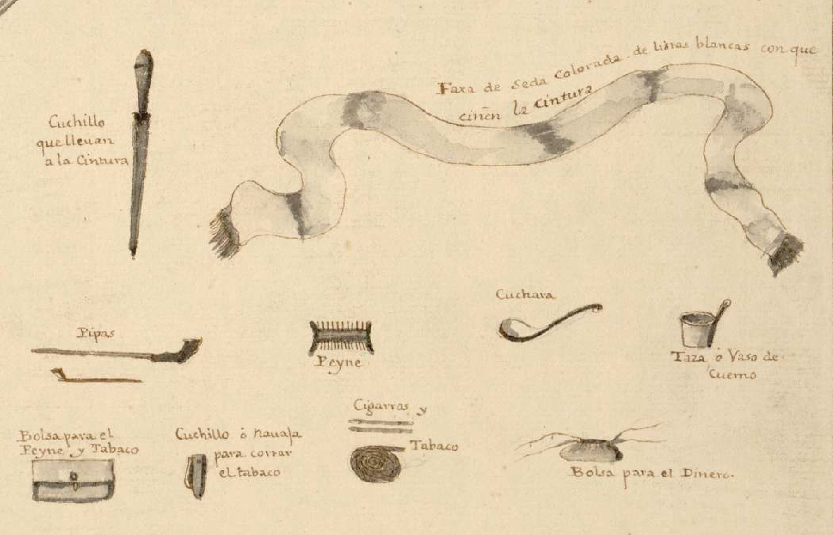 The duel begins with Flynn wearing what at first appears to be a sleeveless waistcoat but is in fact a coat with different-colored sleeves or a long-sleeved waistcoat, with a baldric worn over a sash, apparently sewn or otherwise un-historically attached to the sash to keep the former from bouncing around. Rathbone is in his shirtsleeves, but likewise with a baldric worn over a sash. Eyewitness images of buccaneers in the 1680s — the only eyewitness images of any European-derived sea rovers during the Golden Age of Piracy — do show sashes on French buccaneers, but not baldrics. Sword-belts were worn instead, given their convenience, and they’re also not as hot. If a baldric were worn, it would typically have been worn beneath a sash to prevent it from bouncing around. (Why baldrics over sashes rather than under them as more practical? So the baldrics could be removed while leaving the romantic sashes in place.) I’ll discuss this further in part five of this series.