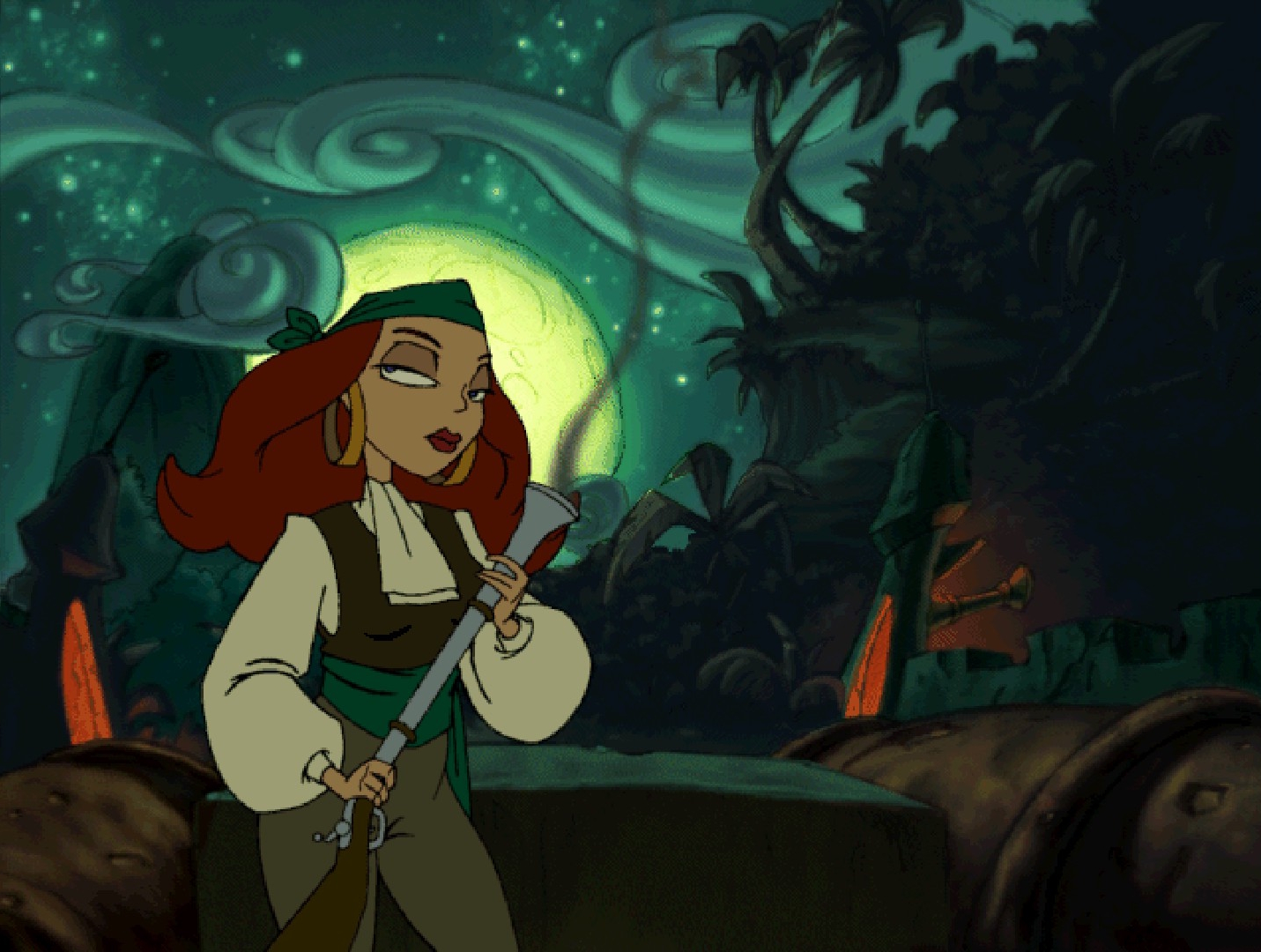 In video games, Elaine Marley from the several Monkey Island games was surely inspired at least in part by redheaded “Spitfire” Stevens aka Maureen O’Hara.
