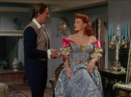 The female lead was red-haired Rhonda Fleming, one of the “queens of technicolor,” the most famous of whom was Maureen O’Hara who starred in several swashbucklers and whom some critics suggested would have been better in the role–and better for its box office.