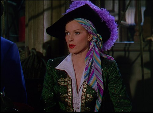 More importantly, Rhonda Fleming plays a buccaneer, Captain Rouge (that is, Captain Red)–she was also a pirate!