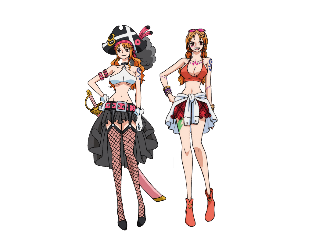 Nami as depicted in the film One Piece Redd (2022), and as played by Emily Rudd in the live action Netflix series (2023).