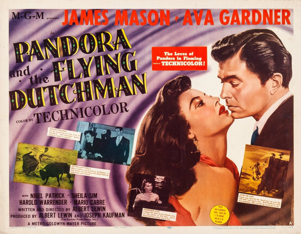 The Flying Dutchman in the modern era: lost wandering souls, ancient sins, excellent insight into human nature, with spellbinding action and story, plus true love. An outstanding, elegant, sophisticated film starring Ava Gardner and James Mason. The New York Times has a short but updated review on a new digital transfer here.
