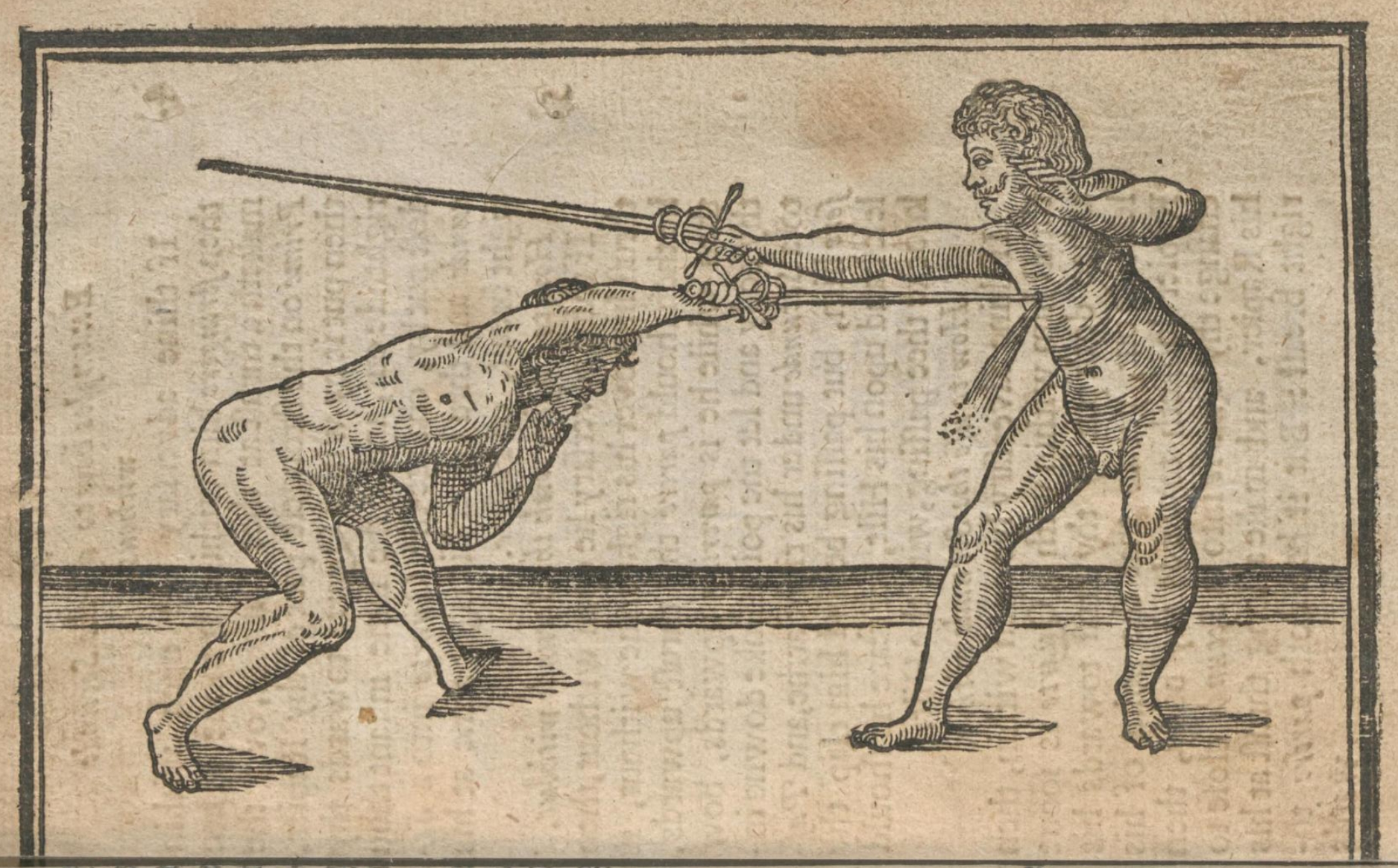 For the fencer armed with a rapier on poniard, placing the poniard-armed hand on the ground is giving up half of one’s offense and defense, to be replaced by almost blind trust.