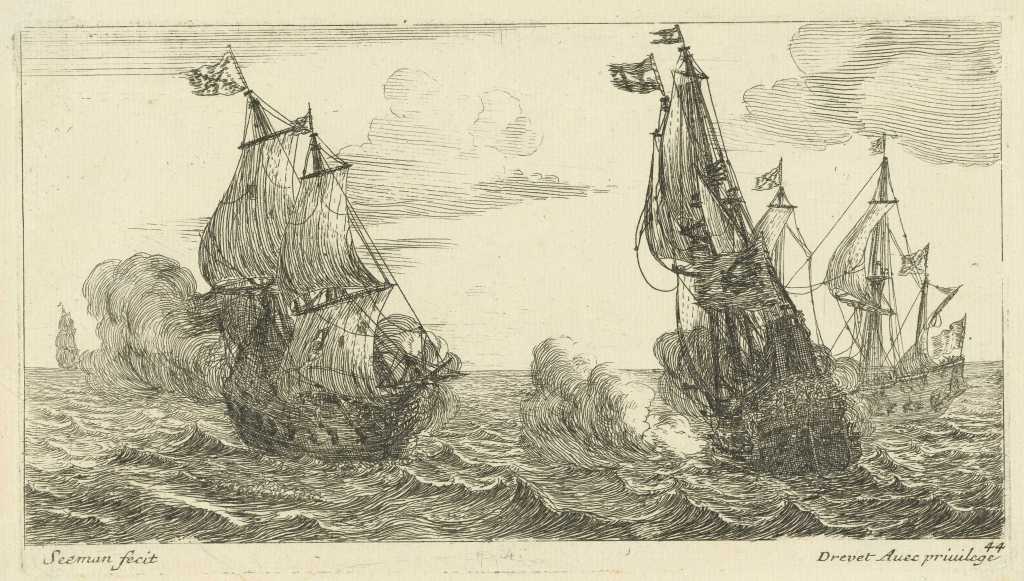 In June 1686 while careening his ship at Samana Bay, Hispaniola he was discovered by the pirate hunters HMS Falcon and HMS Drake. The men-of-war expended nearly all of their powder pounding the pirate ship to pieces. Banister’s temporary shore batteries (which [SPOILER ALERT] Tom Leach should have erected at the Albuquerque Keys) returned fire but failed to stop the men-of-war.